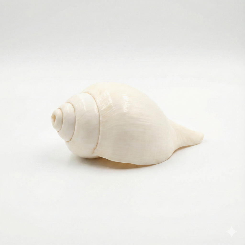 Auspicious blowing conch used to dispel negative energy and herald the beginning of worship with its divine, purifying sound.