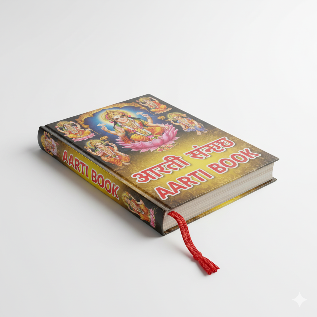 An Aarti-Book is a sacred compilation of devotional hymns (aartis) sung in praise of various deities, guiding devotees in offering collective prayers and expressing reverence during puja and rituals
