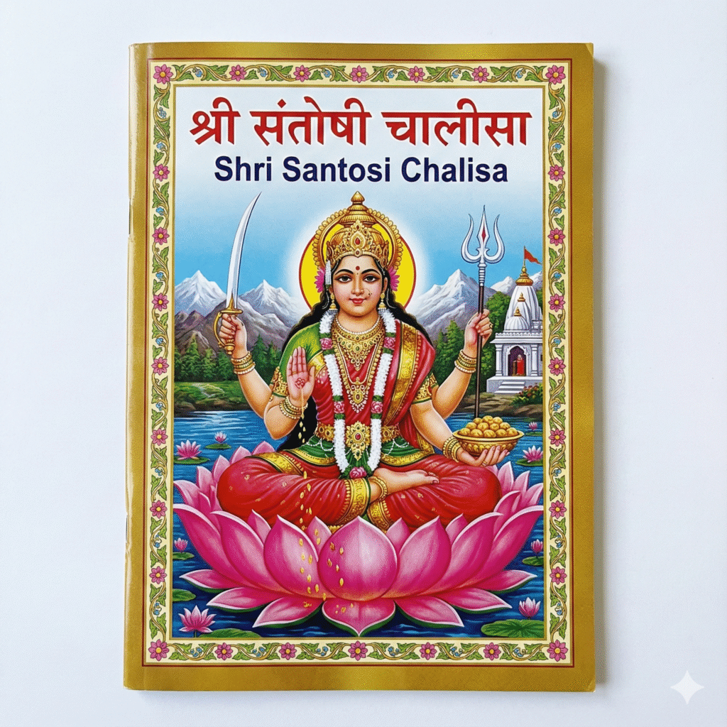 Reciting the Shri Santoshi Chalisa during Friday puja rituals is believed to invoke the blessings of the Goddess to bring peace, prosperity, and the fulfillment of one’s heartfelt desires.