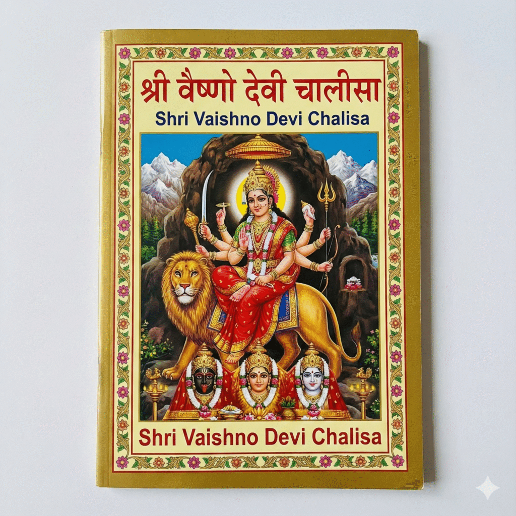 Reciting the Shri Vaishno Devi Chalisa during puja rituals invokes the divine protection of the Mother Goddess to grant peace, prosperity, and the fulfillment of worldly desires.