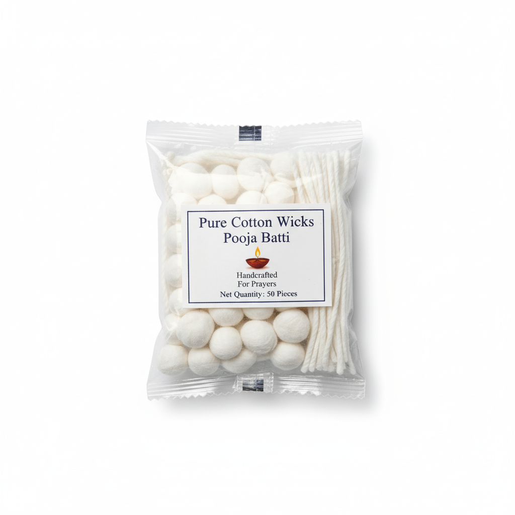 Long cotton wicks, ready to be dipped in Ghee or oil and used for daily lighting of diyas and oil lamps during Pooja.