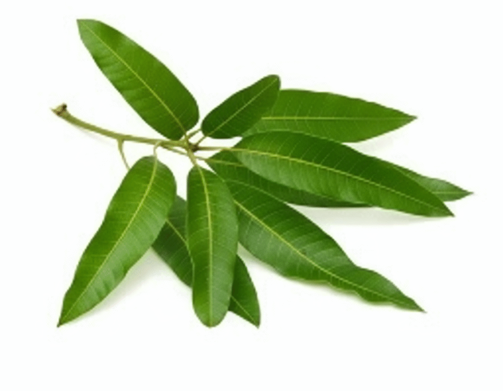 The mango leaf is an oblong, glossy, evergreen foliage of the Mangifera indica tree, traditionally used in spiritual ceremonies like puja materials, devotional literature, religious artifacts