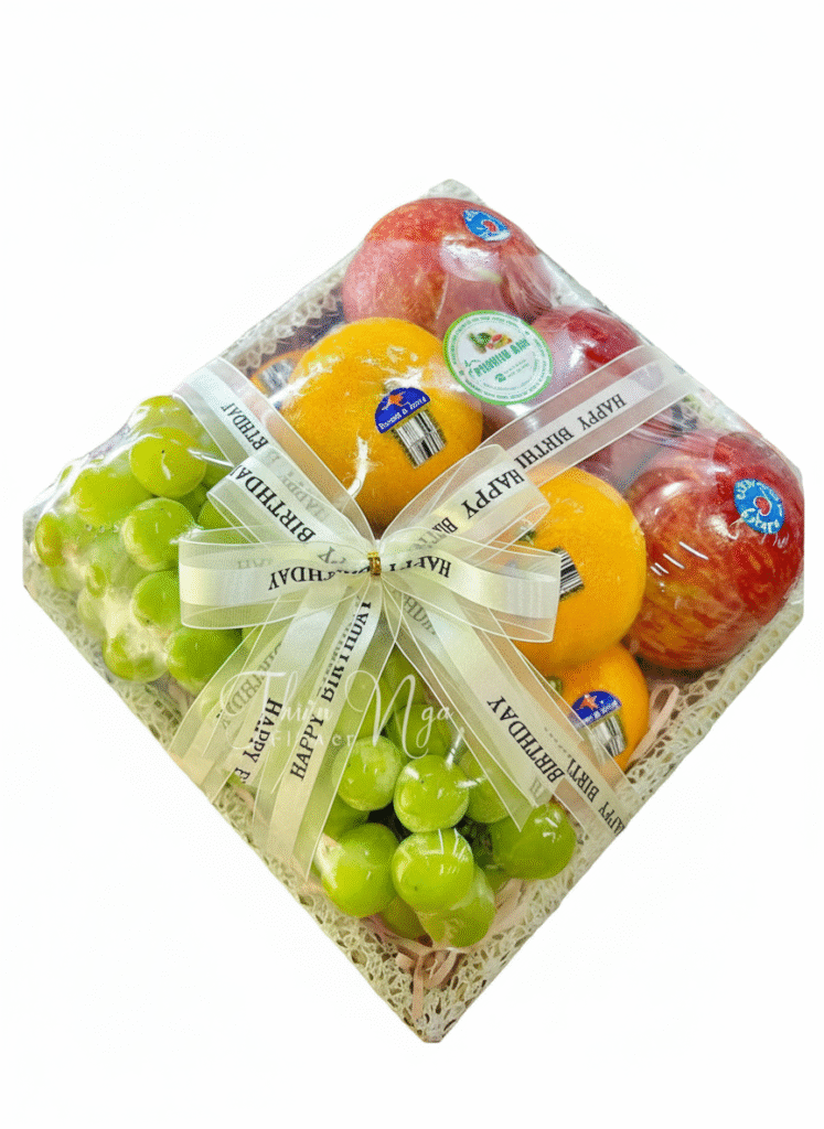 A mixed-variety box containing five types of seasonal fruits, ideal for a week’s supply of fresh, colorful, and nutrient-rich produce.