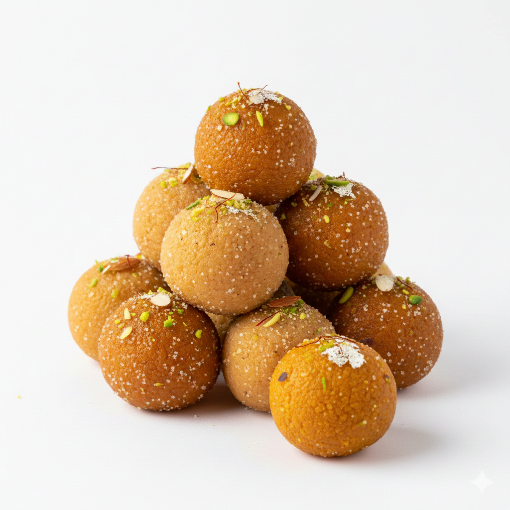 Ladoo is a beloved spherical Indian sweet made from flour, ghee, and sugar, commonly served as a sacred Prasad in temples and an essential treat for festivals and auspicious celebrations.