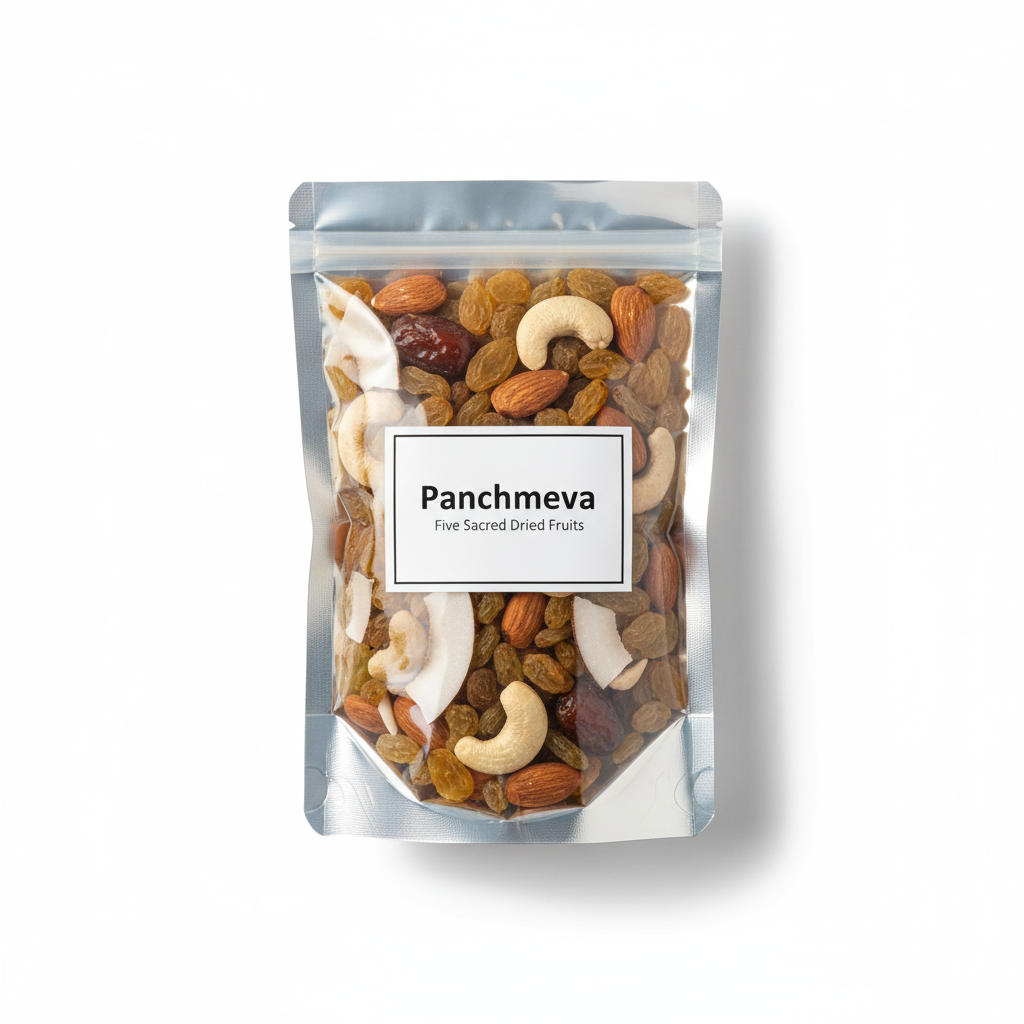 A good-sized bag of the five-fruit blend, ideal for distributing as Prasad to a moderate number of guests or for use in a medium-sized ceremony.