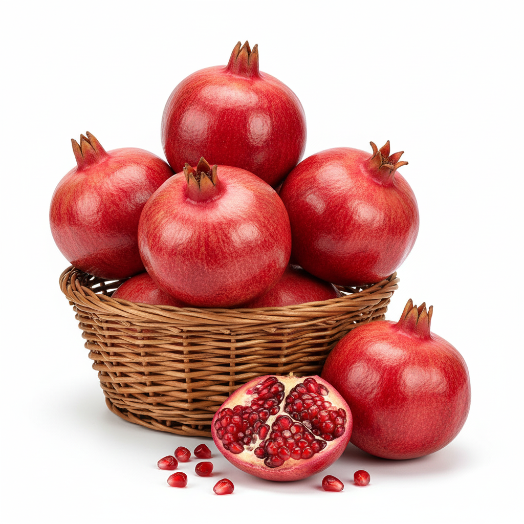 The ruby-red fruit, highly prized for its vibrant seeds and often used as a special, colorful offering to Goddess Lakshmi.