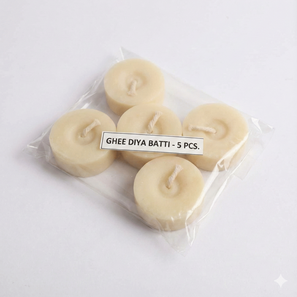 Each Cotton Wick is pre-sealed with Shuddh Desi Ghee for a long lasting and steady flame for your Pooja, Aarti, Diya, Oil Lamp, Light holders and other uses.