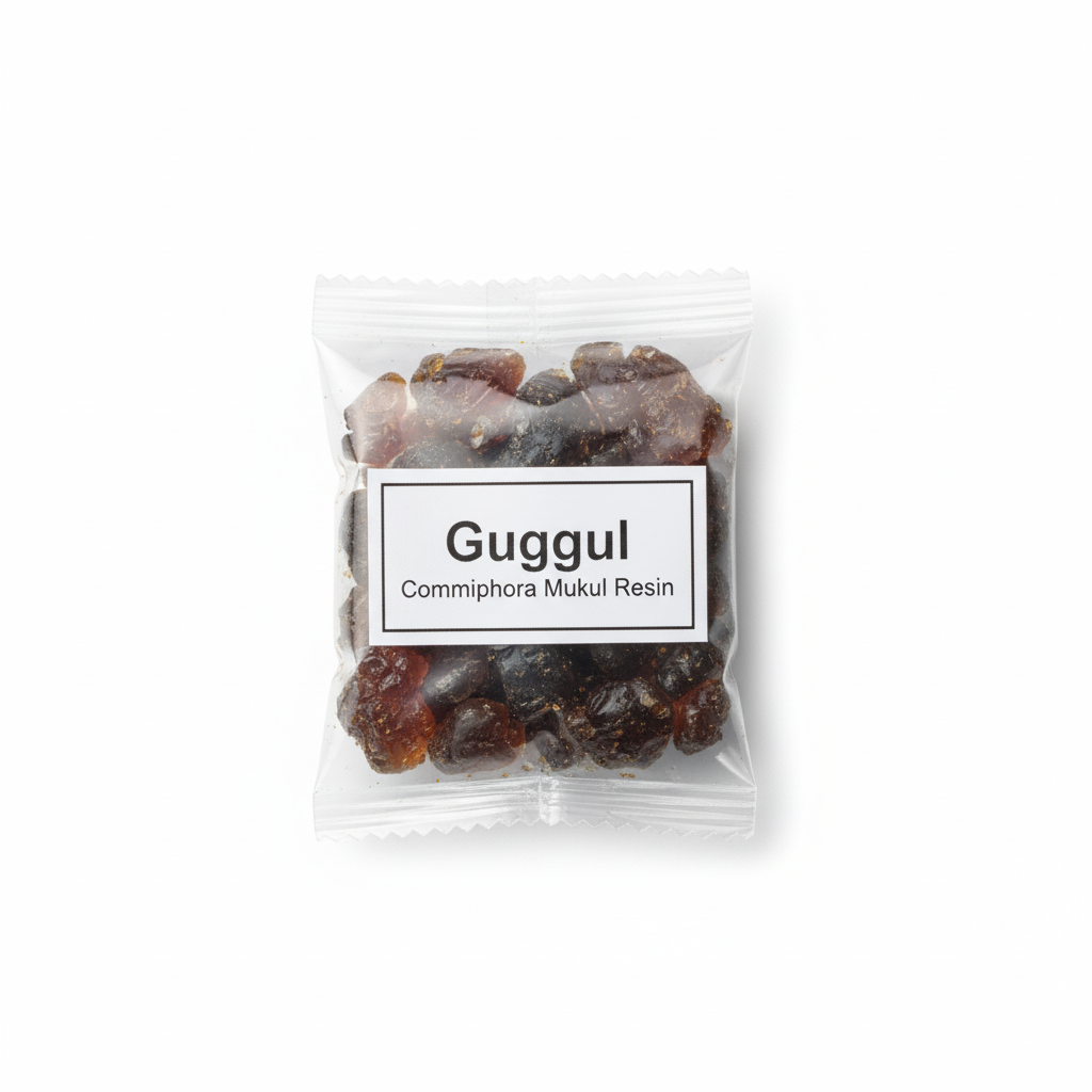 Fragrant pack of the natural resin, used to create a purifying smoke (Dhup) to ward off negative energy and cleanse the air during rituals.