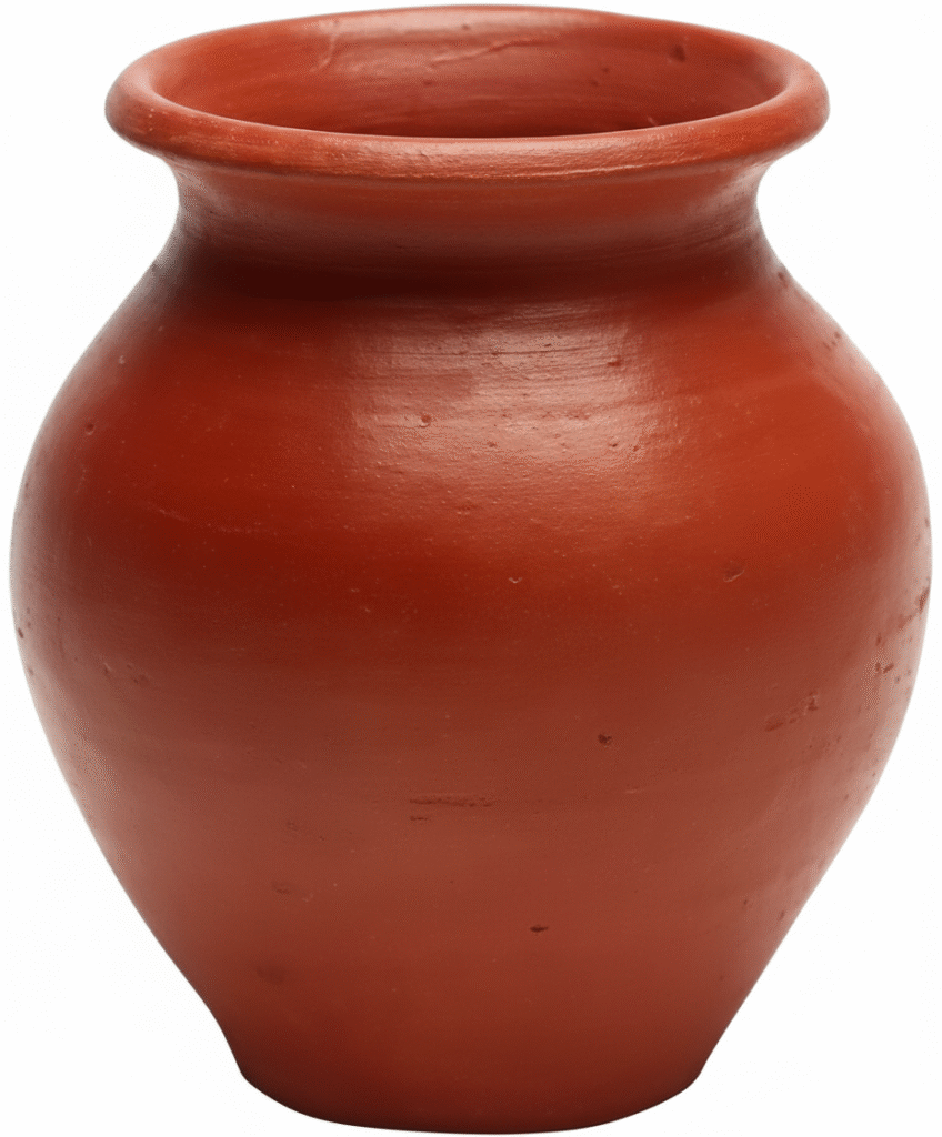 A traditional clay pot (kalash), an essential symbol of abundance and a sacred vessel in Hindu rituals. Its porous material is believed to purify and cool the contents, making it perfect for holding water or rice during any puja ceremony.