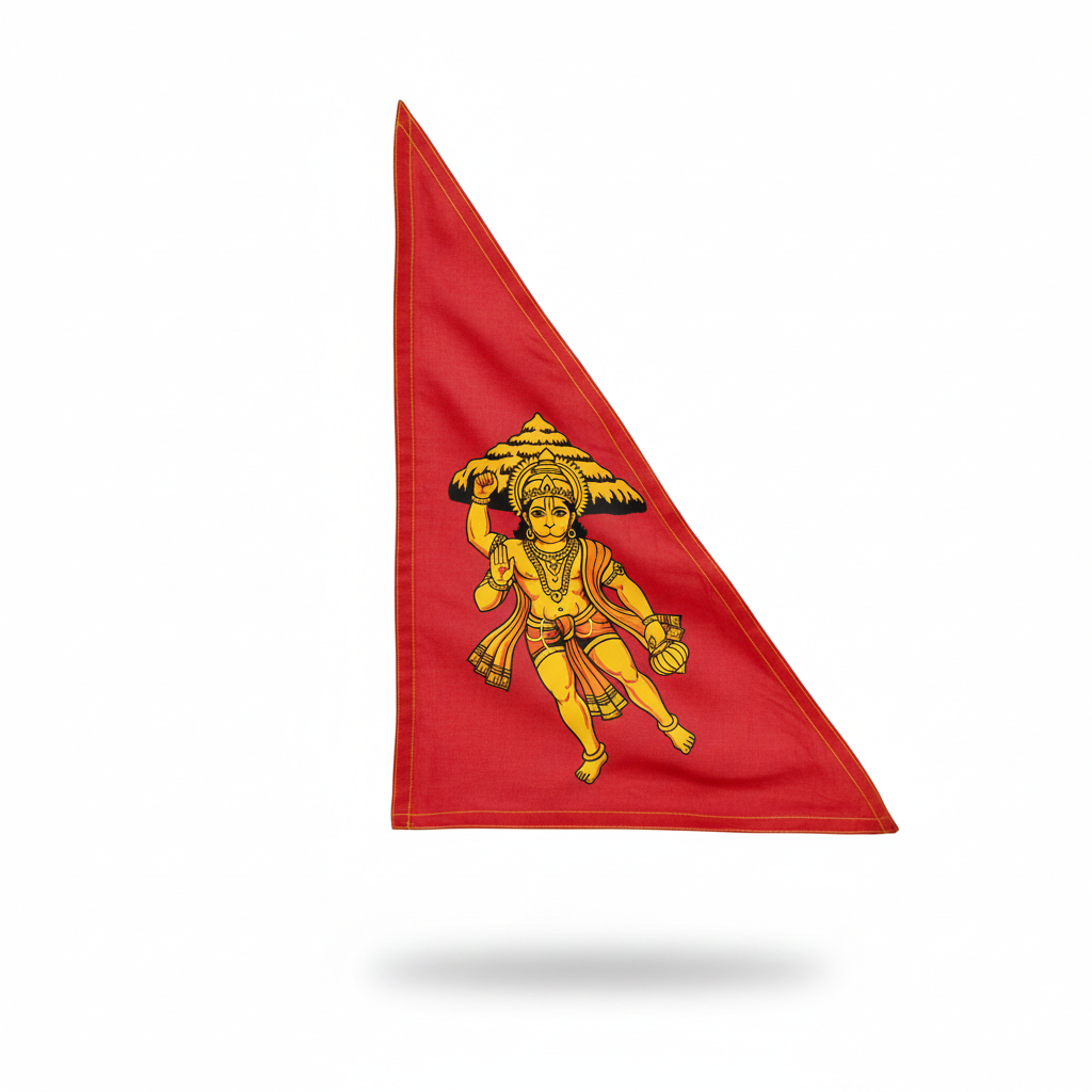 Hanuman Dhwaja: A vibrant triangular flag symbolizing the protection, strength, and presence of Lord Hanuman.