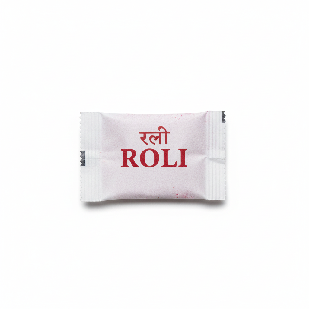Roli (vermilion powder) is a vibrant, sacred red pigment used to apply a teeka on the forehead of the devotee and the deities, signifying blessings, auspiciousness, and spiritual energy during puja and rituals